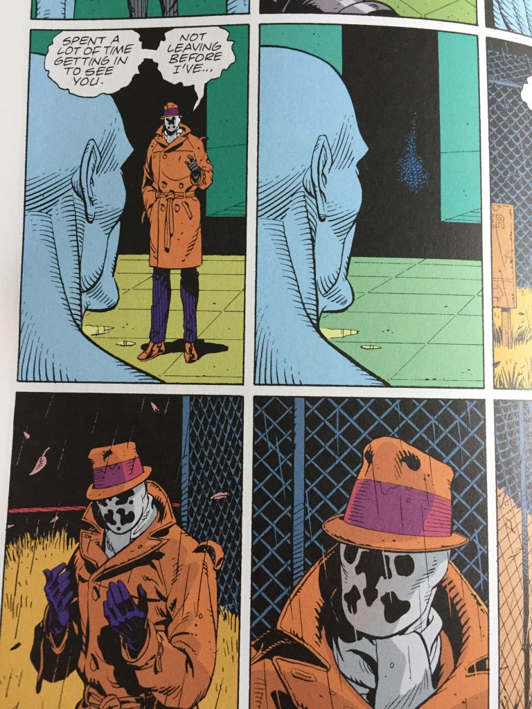 Načrtno ne želim v podrobnosti, saj že vsak košček lahko uniči bralski užitek in napetost, kot vam jo bo težko ponudil katerikoli drugi strip oz. stripovska serija. Morda komu ne bo všeč, da sem glavne junake poimenoval superjunaki, pa čeprav so tudi sami tako označeni v stripu. Zanimivo pa je, da je izraz »watchmen« postal stalnica za neke splošne čuvaje, ki skrbijo, da se stvari odvijajo, kot bi si ljudje želeli. A seveda je to vse prej kot preprosto in če povežem to zgodbo in V for Vendetta (ki jo je ravno tako pisal Moore), lahko najdemo kar nekaj vzporednic – resnična moč je v skupnosti, njihovi povezanosti, ampak vsi potrebujemo nekoga, ki nas bo predramil, povezal in vodil. Watchmen tega niso imeli in zato so končali, kot so. Čeprav ni nikoli konec.