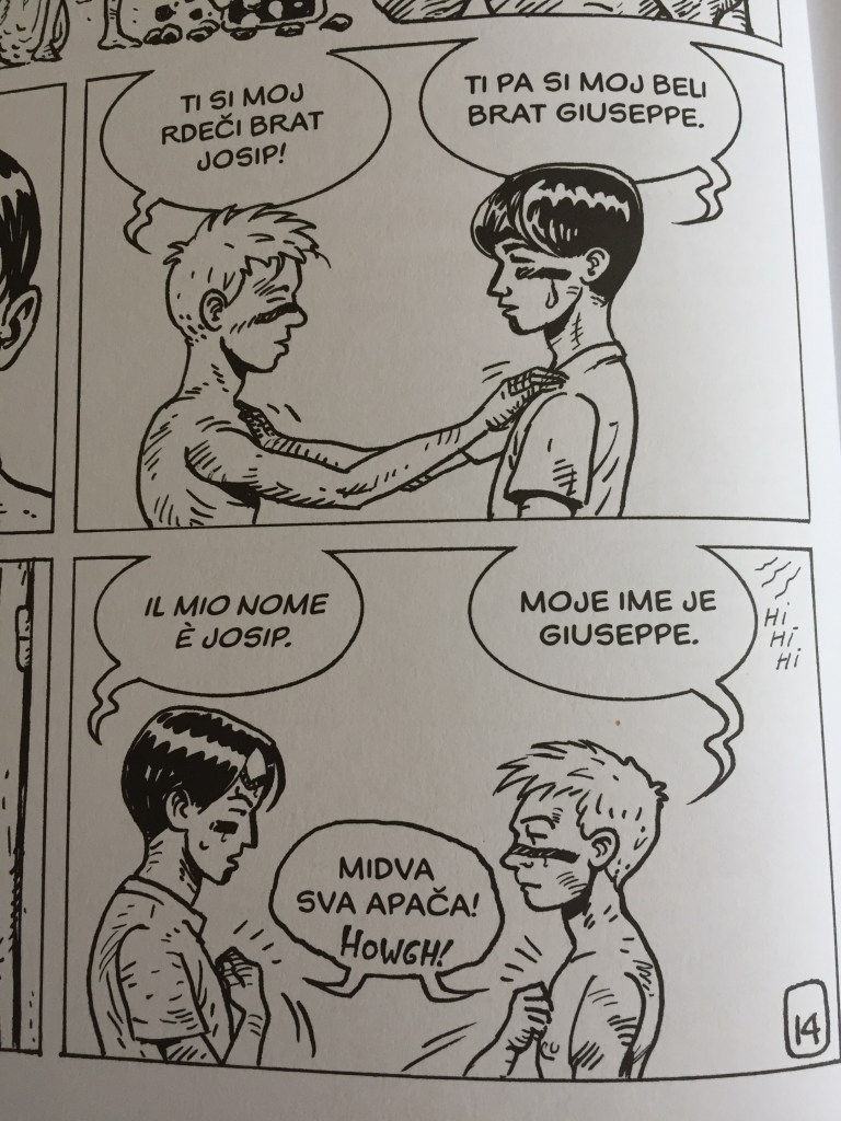 Slovenec Josip Furlan in Italijan Giuseppe Pazzi sta dečka, prijatelja od malih nog, ki odraščata na področju Trsta pred in med prvo svetovno vojno. Navkljub narodnostni razliki (avtor ju je odlično prikazal kot svetlo in črnolasca) je njuna prijateljska vez tesna, pristna in iskrena. Avtor ju tekom zgodbo postavi ob bok Winnetouju in Oldu Shatterhandu, tako različna in tako podobna. Navihano otroštvo in razigrano najstništvo, v katerega pa že posegajo vse ostrejši spori, pritiski ene in druge družine ter okolja. Josipov oče dobi zaposlitev v Narodnem domu (vzdrževalec v Hotelu Balkan), ponosu močne slovensko-hrvaške skupnosti, ki je živela na področju Trsta v tistem času, kjer se ob očetovem odhodu na fronto prve svetovne vojne zaposli tudi Josip, saj mora skrbeti za družino.